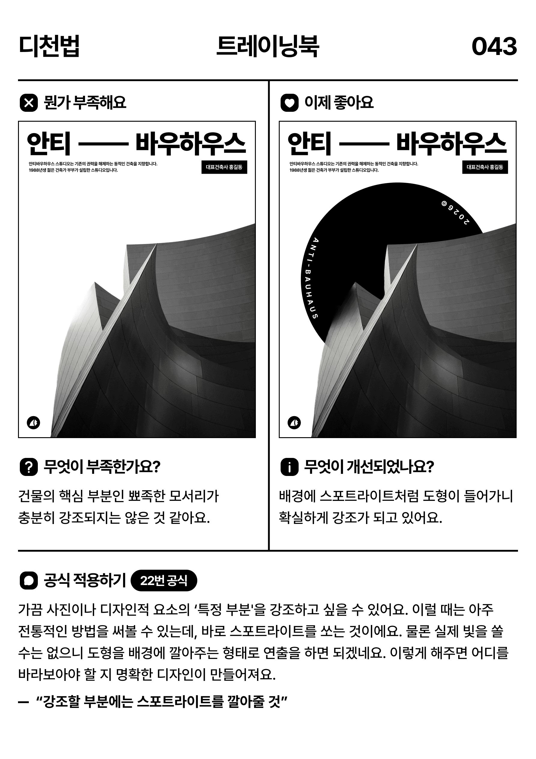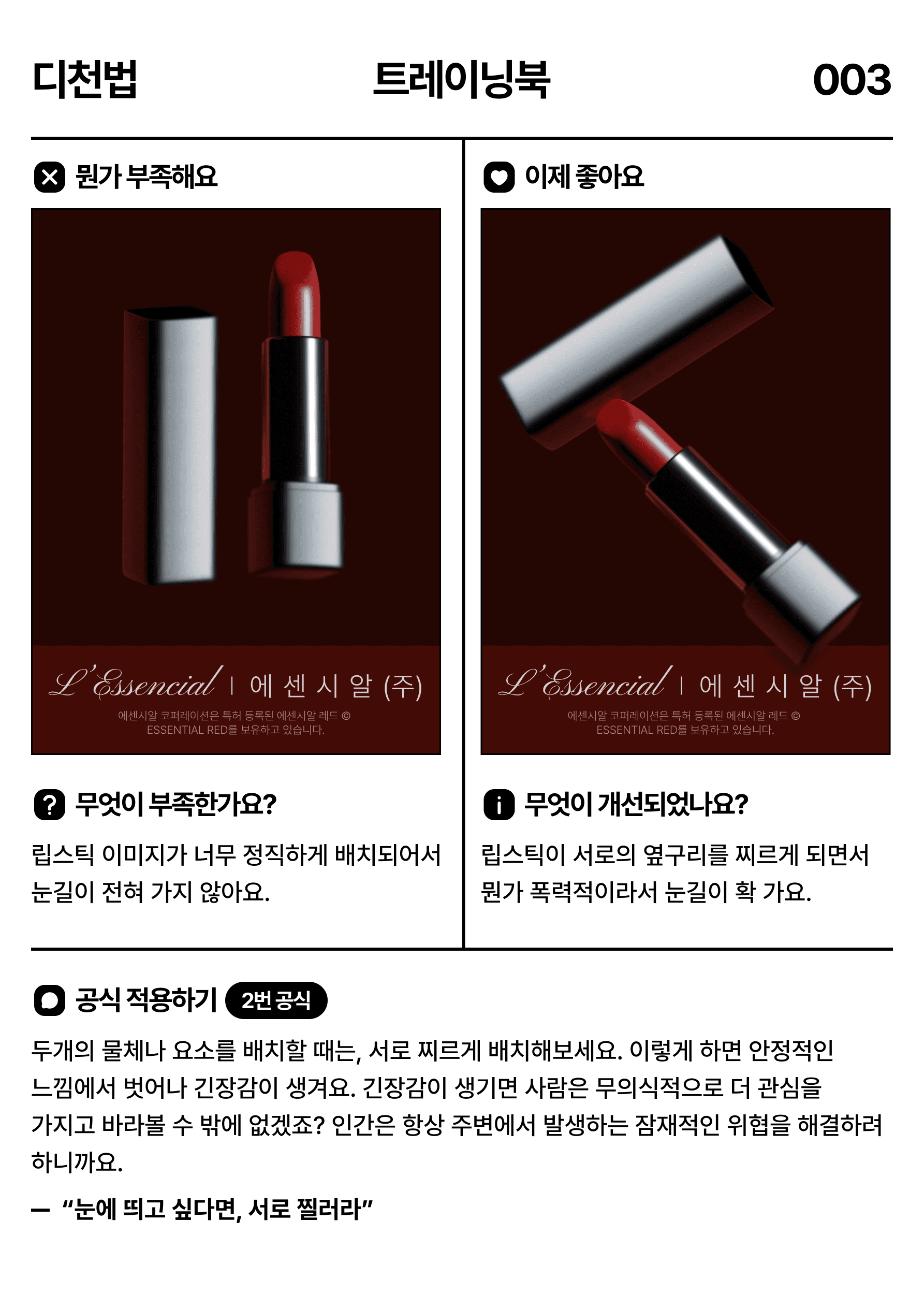 디자이너들에게는 신선한 인사이트를 제공하되, 일반인도 보면 즉시 응용할 수 있는 난이도입니다.